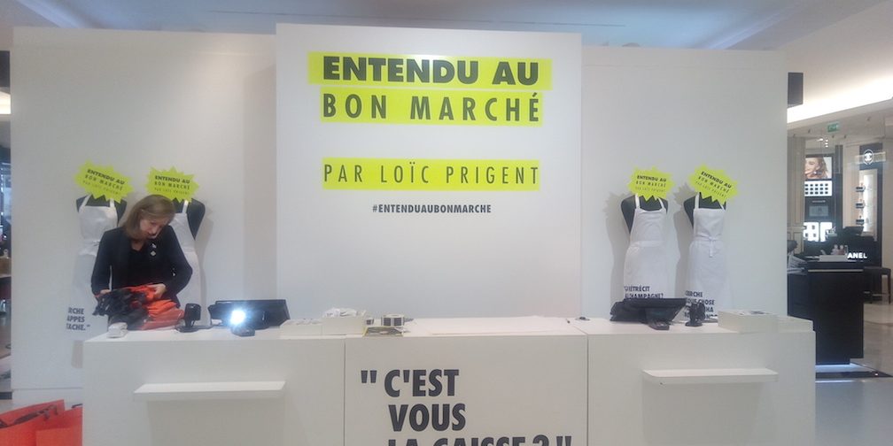 Jusqu’au 2 avril 2017 venez découvrir l’exposition « Entendu au Bon Marché par Loïc Prigent, » mettant en scène ce qui se dit au cœur du célèbre magasin le Bon Marché Rive Gauche. Ludique et insolite.