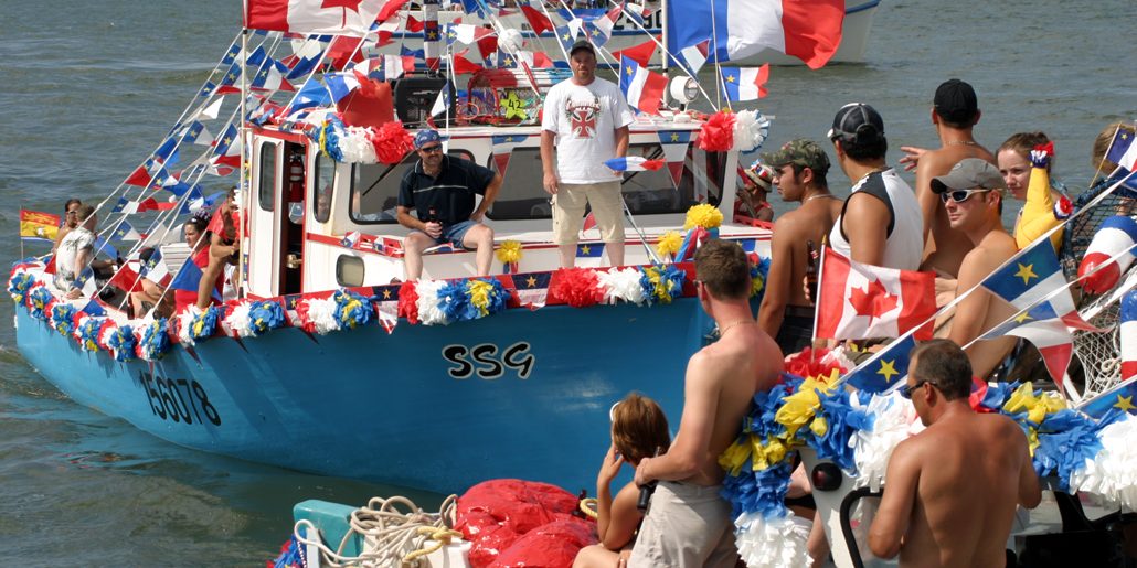 Située dans la province maritime et officiellement bilingue du Nouveau-Brunswick, la péninsule des irréductibles Acadiens de Caraquet raconte à sa manière une parcelle de cette histoire. En ce dimanche du mois d’août, les marins de ce gros port de pêche du Nouveau-Brunswick sur la côte sud de la baie des Chaleurs, se préparent pour la traditionnelle bénédiction des bateaux. Profondément catholiques, les habitants perpétuent une tradition qui serait héritée de leurs ancêtres poitevins et bretons. Chaque été, en ouverture du Festival acadien de Caraquet qui fête cette année du 3 au 15 août sa 55e édition, le curé de la paroisse célèbre une messe en l’honneur de la Vierge Marie, patronne des pêcheurs. Dans une atmosphère de recueillement, il prie pour les marins morts en mer et procède à la bénédiction de tous les chalutiers pavoisés aux couleurs de l’Acadie. Ici comme ailleurs, l’attachement au culte marial revêt une importance toute particulière. La mère du Christ n’a pas seulement donné aux Acadiens un hymne et une fête nationale. C’est aussi son étoile la « Stella Maria » qui illumine le cœur et brille sur le drapeau tricolore de ce peuple apatride. A l’issue de la messe en plein air, la manifestation prend soudainement un tour plus festif. A grand renfort de caisses de bières, les patrons pêcheurs invitent les amis et les touristes à monter à bord pour une petite balade en mer.