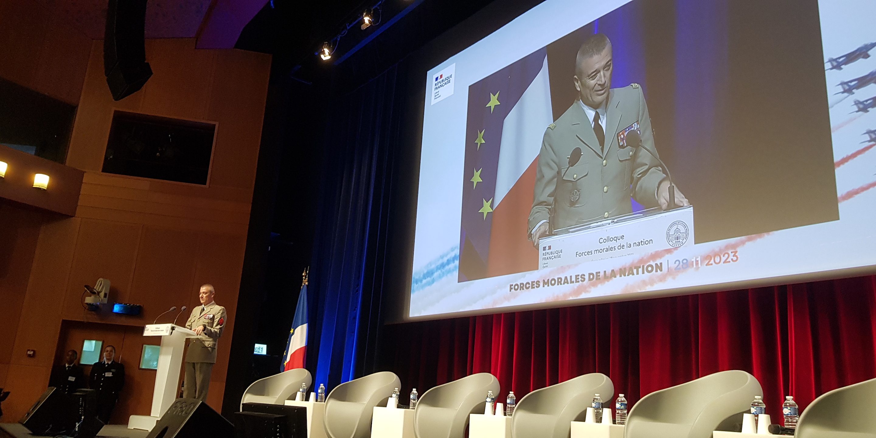 🇫🇷 Le 28 novembre 2023 se tenait le Colloque « Forces morales de la nation » dans le cadre de l’Académie de défense de l’École militaire en présence du Général Thierry BURKHARD, Chef d’état-major des armées et du Général de corps d’armée Benoît DURIEUX, Président de l’Académie de défense de l’École militaire, Directeur de l’IHEDN et de l’Enseignement militaire supérieur.
