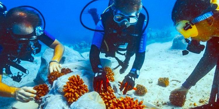 Plus de 300 espèces de poissons ont été recensées dans la réserve privée, et le travail de Rianne incite les clients à s’impliquer activement dans la protection du monde sous-marin de l’île. En hommage à son engagement, une sculpture de sirène portant son nom a été intégrée au récif artificiel de l’île, servant de catalyseur pour la croissance des coraux.