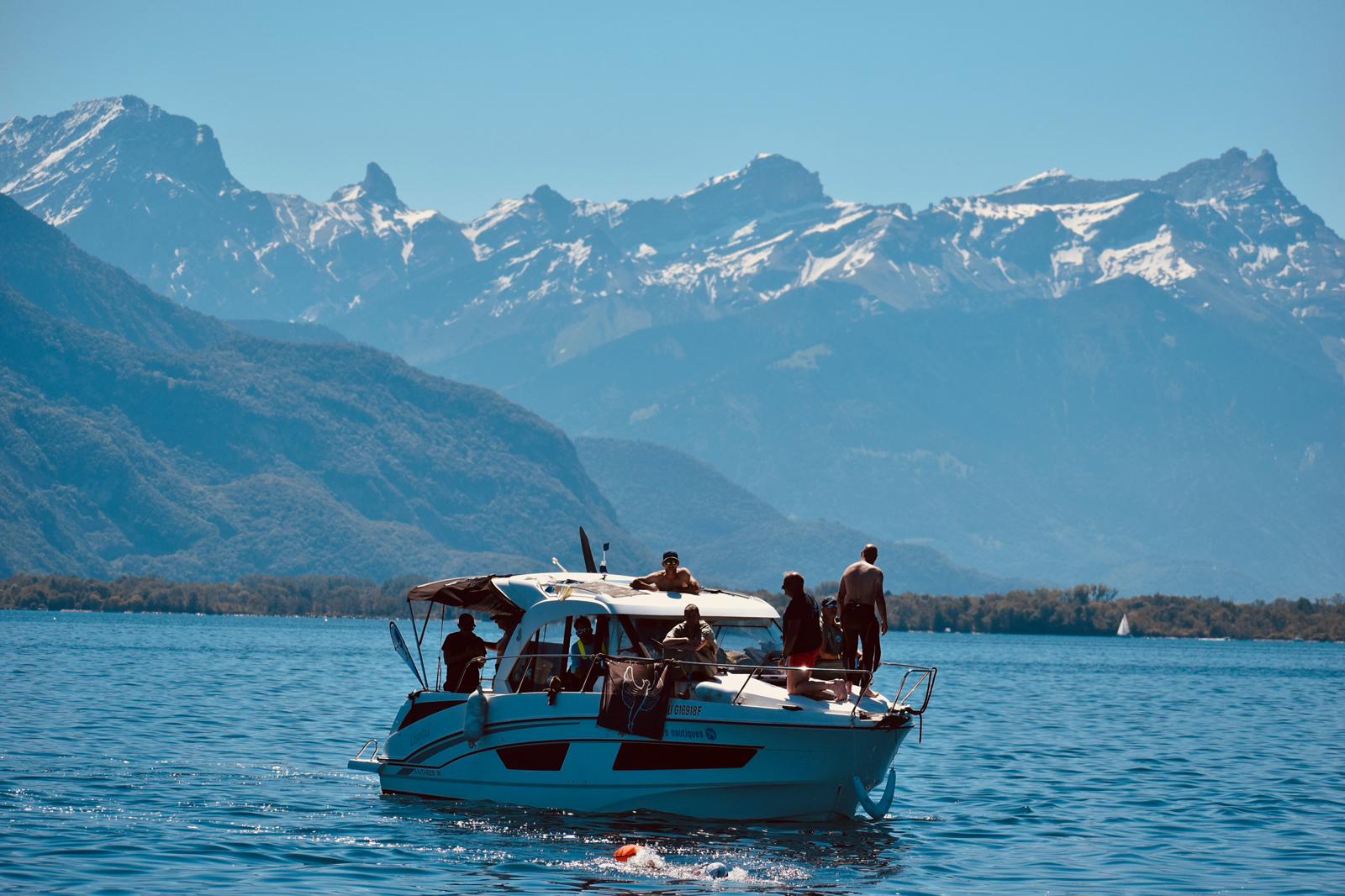 Le défi du Léman 2025 sur le bateau avec les nageurs © Léa Piwowarczyk