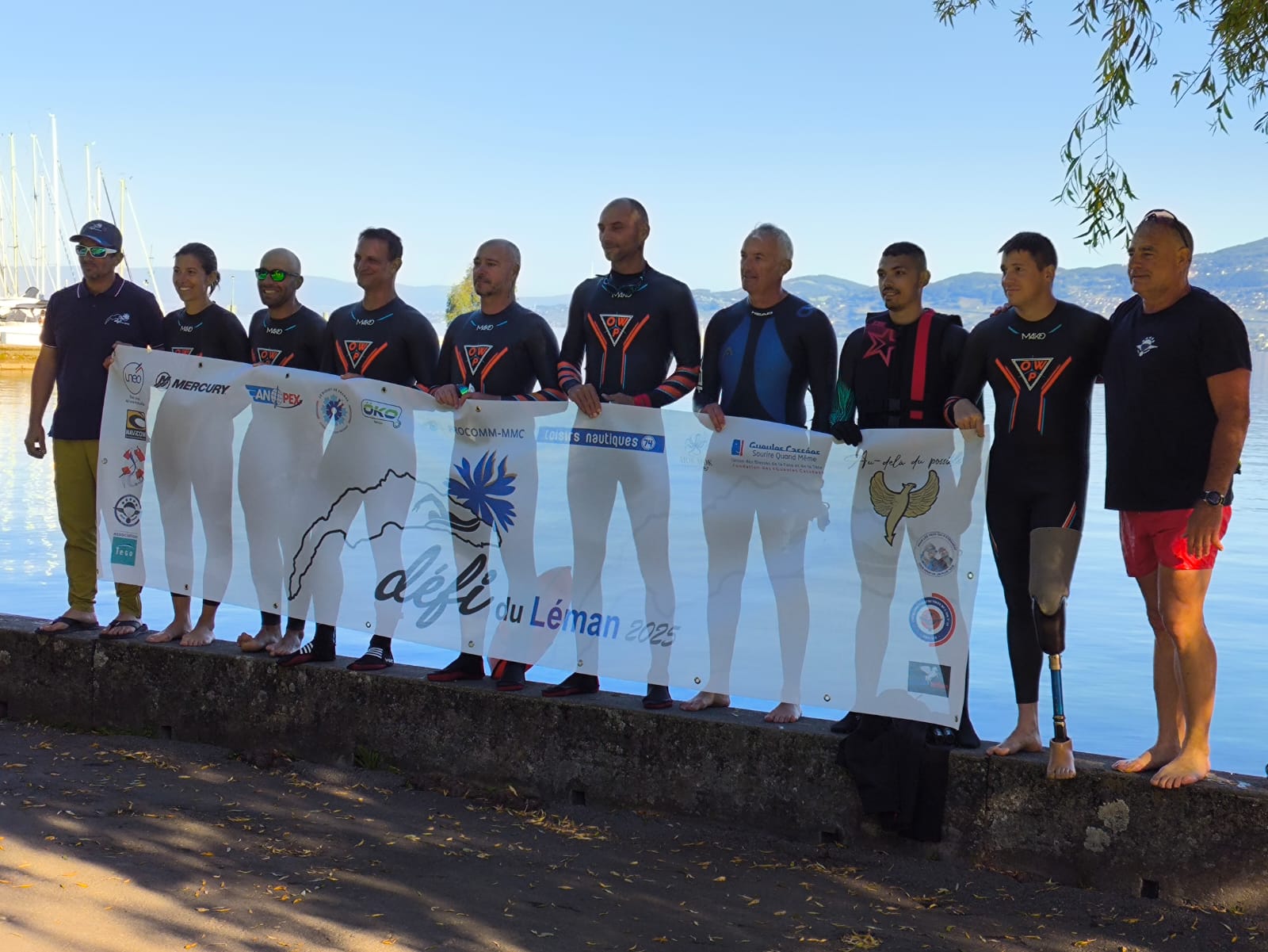 Cette année, soutenue par diverses entités institutionnelles, la 2ème édition a été une nouvelle réussite, une parenthèse avec le quotidien, et l’occasion de laisser derrière nous les difficultés et de se découvrir une force nouvelle. Sur les eaux cristallines du Léman, l’endurance, la rusticité, la polyvalence et la détermination ont été nos compagnons de route. La fraternité, née de la promiscuité et du partage, a été le ciment de cette aventure collective. L’humain, la nature, le mouvement… tout était là. Ensemble, nous avons défié nos limites, trouvé l’apaisement et sommes repartis plus forts. Insubmersibles. Je remercie mes 9 co-équipiers d’avoir répondu présents sur cette aventure. David, pilote bateau; Pascal et Stéphane, en sécu et pilotage bateau; Jérémie, Benjamin, Samuel, Emilien, Mendi et Brian.