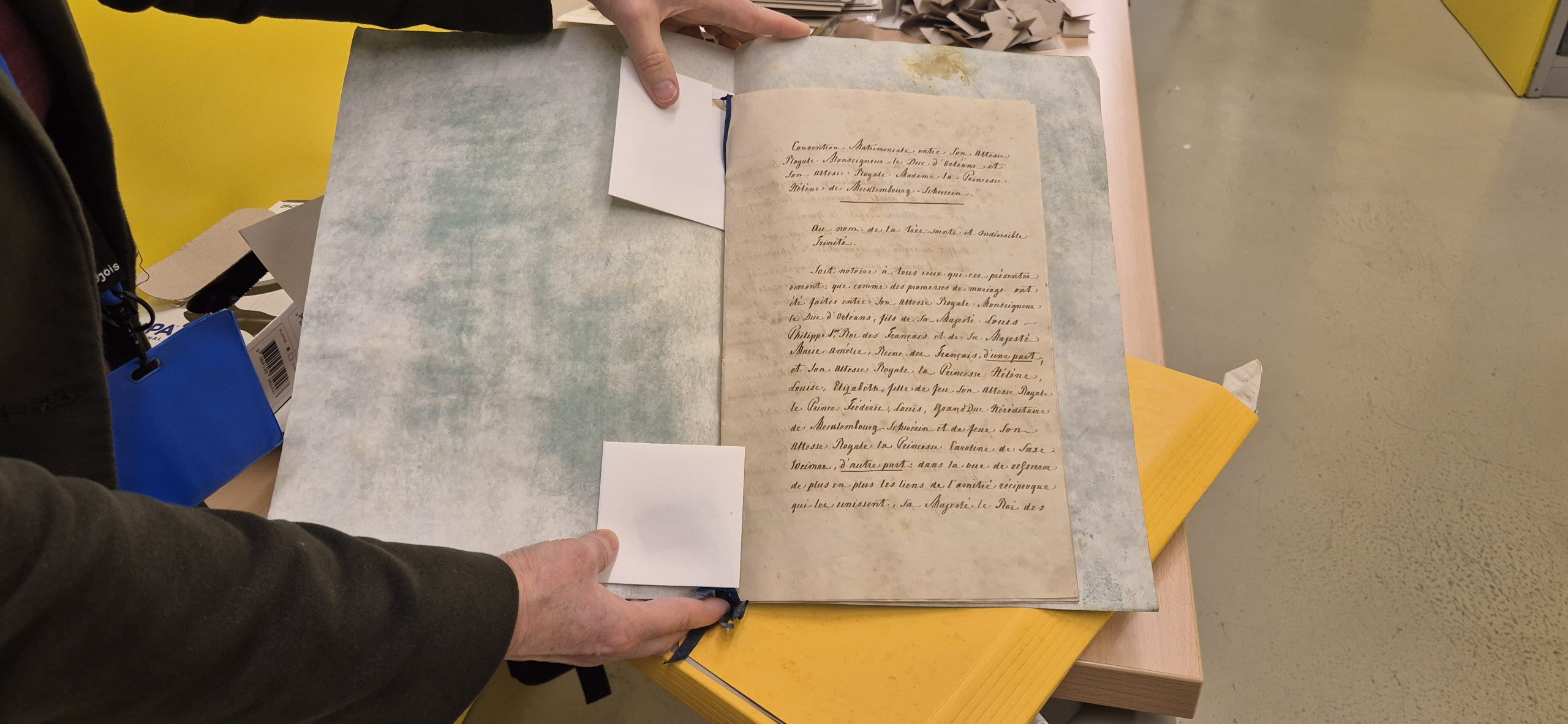« Cette archive est intéressante. Il s’agit du contrat de mariage entre Ferdinand-Philippe, duc d’Orléans, fils de Louis-Philippe et de Hélène, fille du duc de Mecklembourg-Schwerin le 30 mai 1837. » ajoute Sylvie Le Clech.